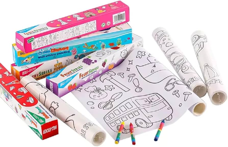 High quality paper roll with fun, interactive designs for kids creativity.