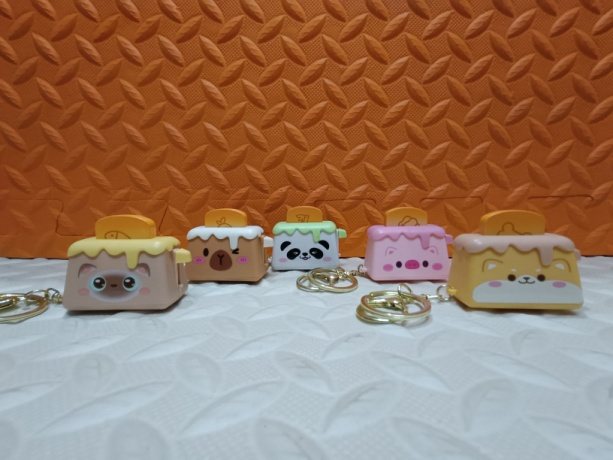 Add a touch of fun and creativity to your everday essentials with this lovable toaster 3D keychain.Available in 5 different characters, Designed to look like an mini toaster with tiny popping toast, this keychain is perfect for those who love playful accessories.